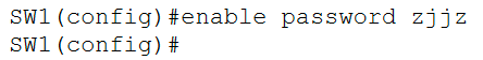 - 为了安全考虑,在SW1、RT1、RT2上配置特权密码:特权密码为:zjjz