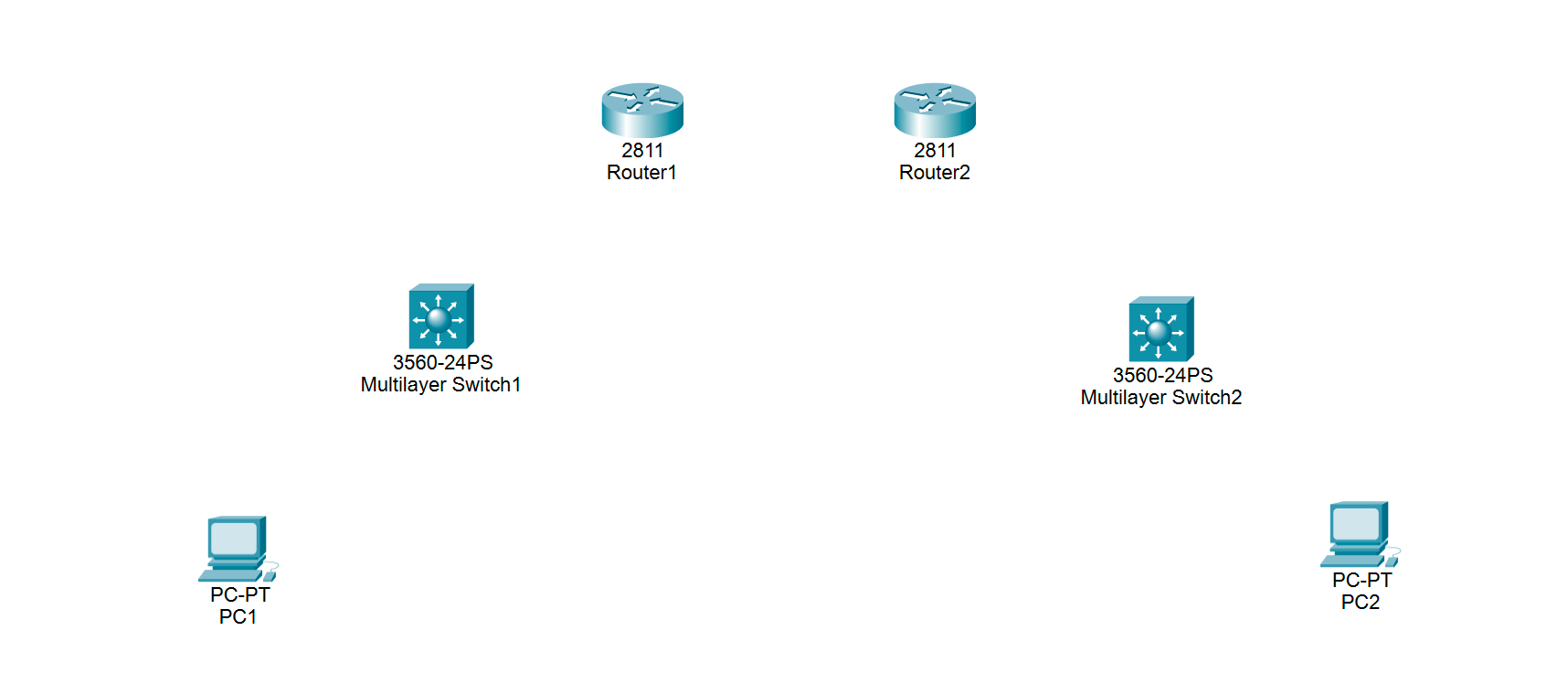 - 据网络拓扑结构图找到对应设备(2811、3560-24PS和PC),简单搭建