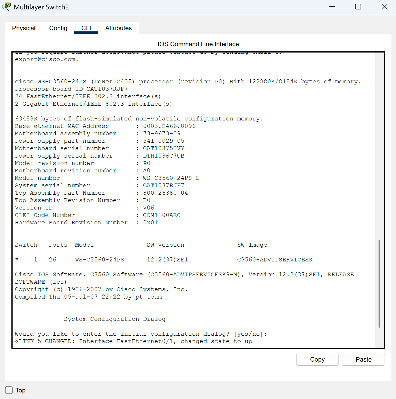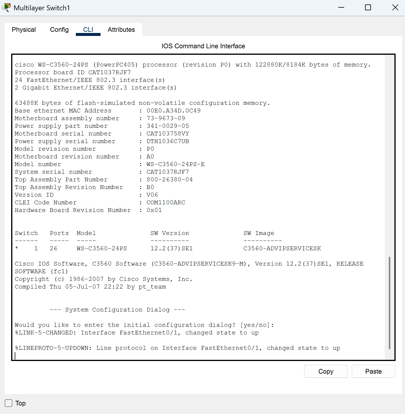 - 进入CLI中,输入 int fa0/1 -> ip add 192.168.3.1 255.255.255.0 -> no shu -> exit
