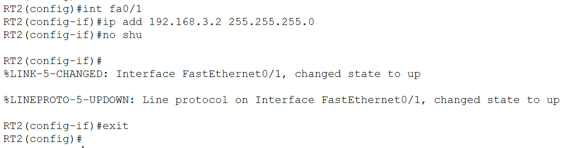 | 7 | RT2 | F0/1 | 192.168.3.2/24 |