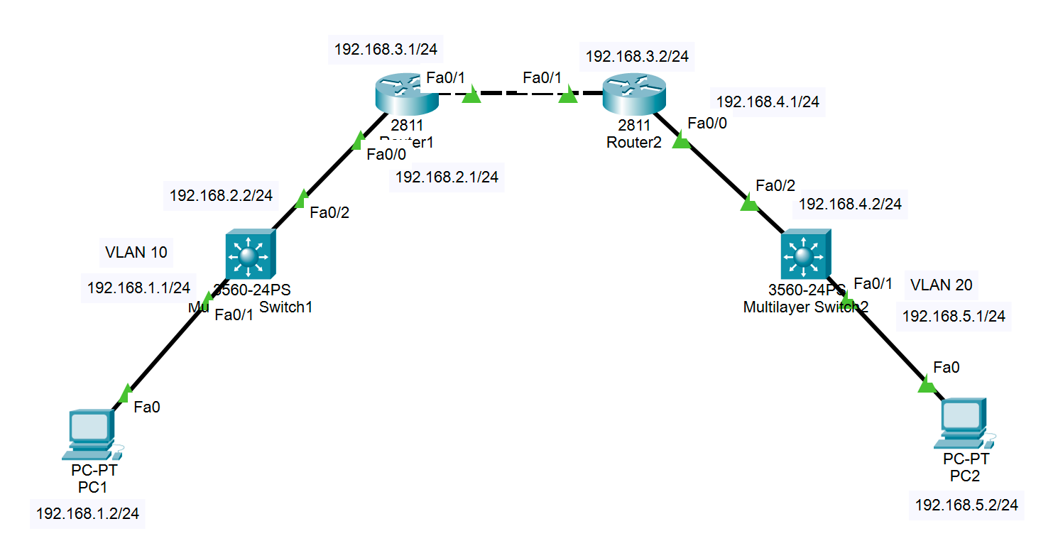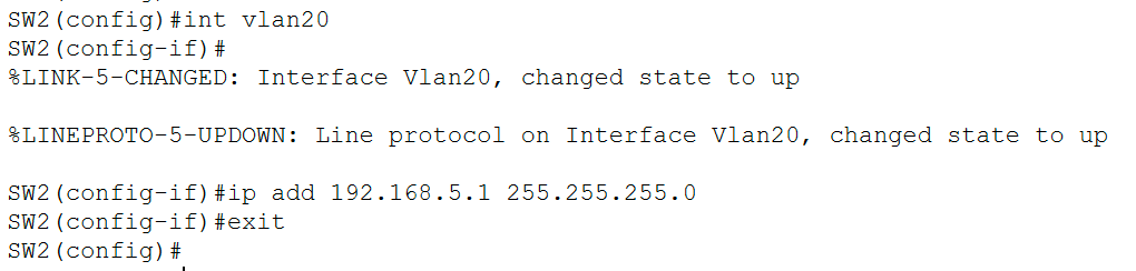| 10 | SW2 | VLAN 20 | 192.168.5.1/24 |
