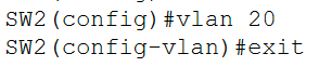 - 双击SW2,进入CLI中,输入 vlan 20 -> exit