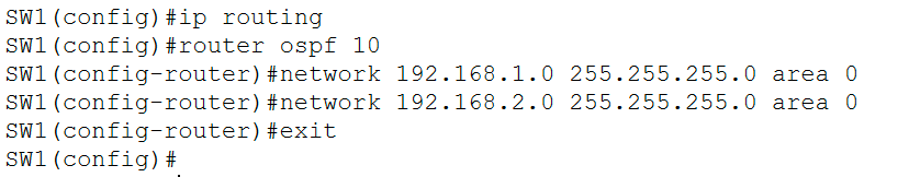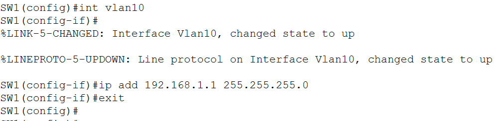 | 3 | SW1 | VLAN 10 | 192.168.1.1/24 |
