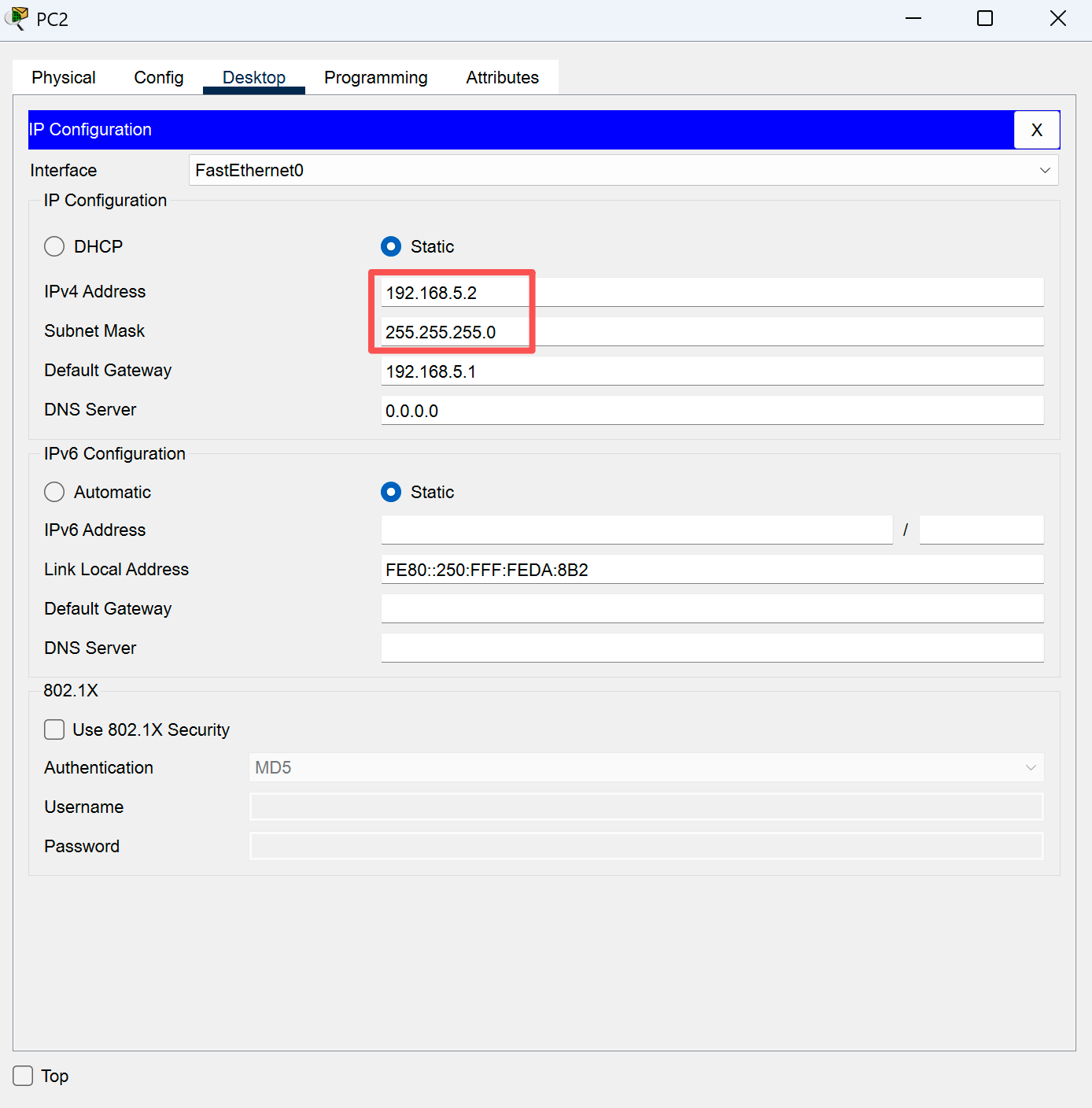 | 2 | PC2 | IP地址 | 192.168.5.2/24 |