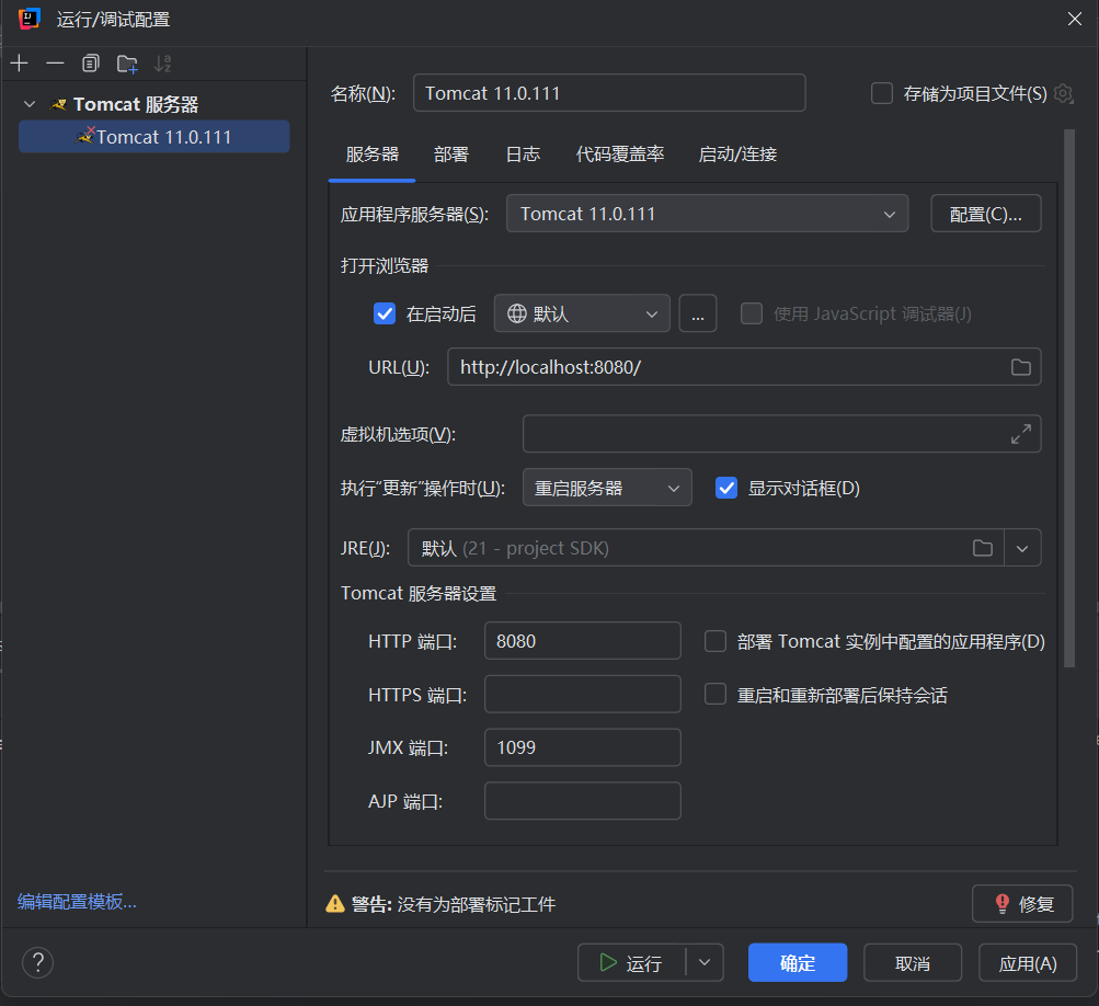 Configure,选择本地 Tomcat 安装目录(如D:\apache-tomcat-9.0.xx)。 - JRE:选择与项目兼容的 JDK(建议 JDK 8+)