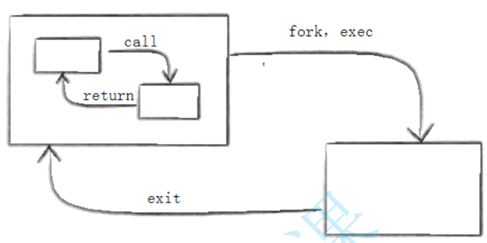 用下图的时间轴来表示事件的发生次序。其中时间从左向右。shell由标识为sh的方块代表,它随着时间的流逝从左向右移动。shell从用户读入字符串"ls"。shell建立一个新的进程,然后在那个进程中运行ls程序并等待那个进程结束