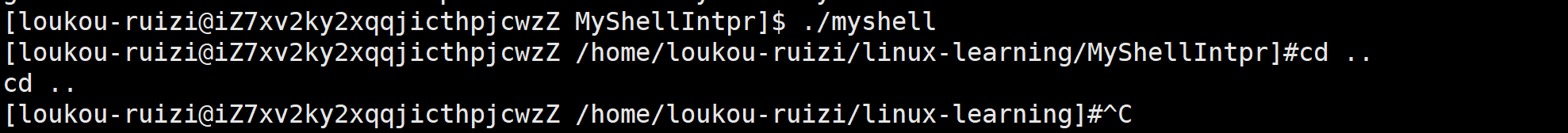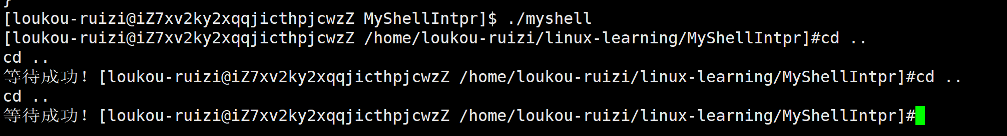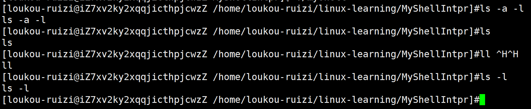 {char command_line[MAXSIZE]={0};//shell本质是一个死循环while(1){//打印命令行PrintCommandLine();//获取用户输入if(fgets(command_line,sizeof(command_line),stdin)==NULL)//不用scanf是因为它会默认以空格为分隔符,无法全部截取continue;//用户在输入的时候至少按一下回车command_line[strlen(command_line)-1]='\0';if(command_line[0]=='0') continue;//如果用户输入的是空串,继续输入// printf("%s\n",command_line);//测试用,现在不需要了sleep(1);}return 0;