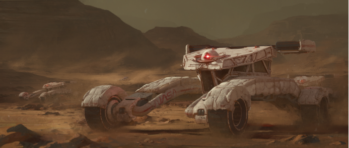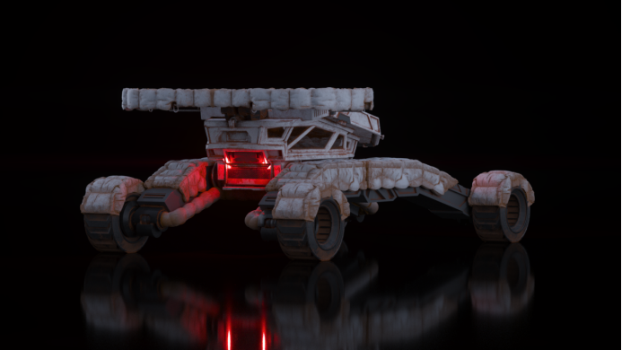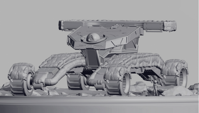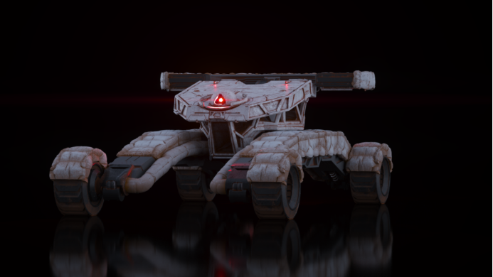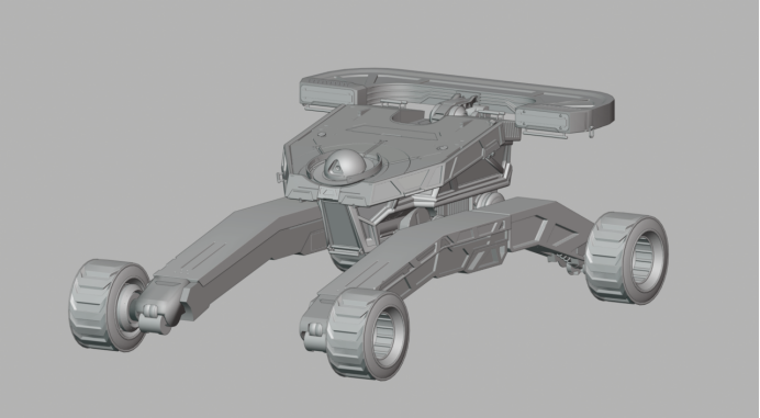 我开始制作漫游者,从令人惊叹的约翰·帕克的这张草图中汲取灵感,并构建了一个快速的 3D 模型,试图捕捉他原始设计的感觉。我使用 EEVEE 进行初始设计可视化;我发现用简单的材料制作漂亮的转盘的速度非常快。
