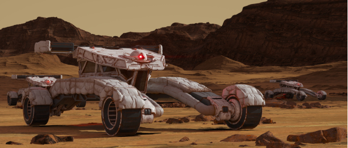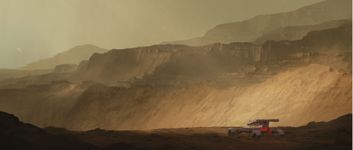 我使用真实的火星高分辨率扫描数据制作了 2 个非常高分辨率的位移,然后使用内置滤镜重新塑造环境以适应我的目的。