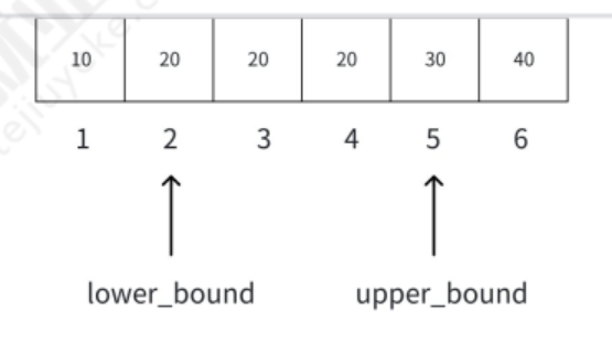 lower_bound(first, last, val):返回第一个≥val 的元素迭代器,时间复杂度 O (log n)。upper_bound(first, last, val):返回第一个 > val 的元素迭代器,时间复杂度 O (log n)。