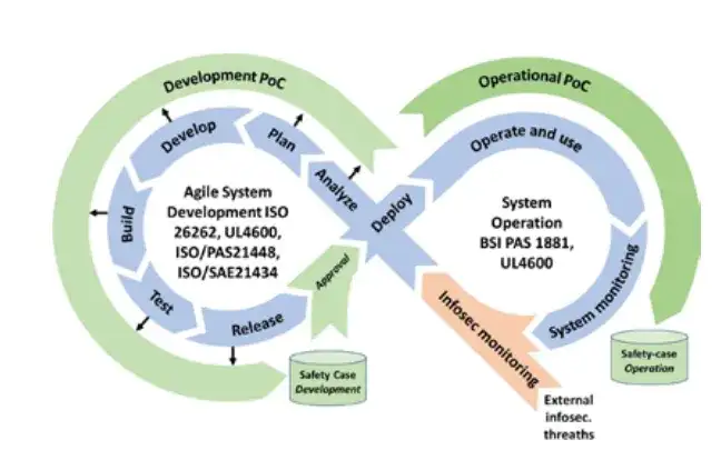 最初为流程工业开发的 SafeScrum 方法,以及最初为铁路信号系统开发的敏捷安全档案(Agile Safety Case),均可适配于汽车行业,并且能够与 ISO 26262 标准、英国标准协会(BSI)PAS 1881 试验标准以及针对自动驾驶产品的 UL 4600 标准保持一致。