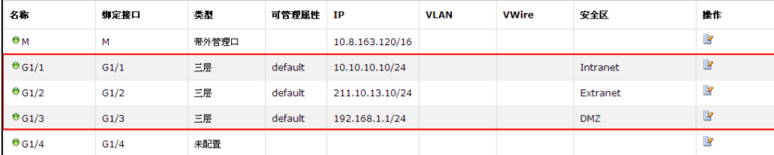 【网络 > 接口 > 接口】,进行接口IP地址配置