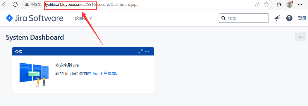 6,在外网的浏览器的地址栏输入复制的外网地址就可以访问本地部署的 JIRA 界面了。