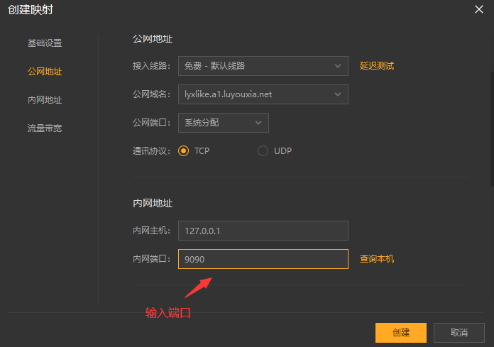 4,在内网端口里填写 JIRA 的端口 9090 后点击【创建】按钮,如下图。