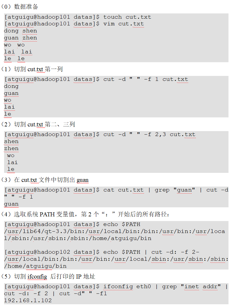 [atguigu@hadoop102 datas]$ grep -r "shen" /home | cut -d ":" -f 1