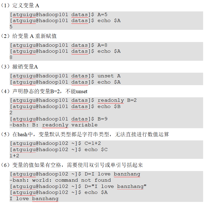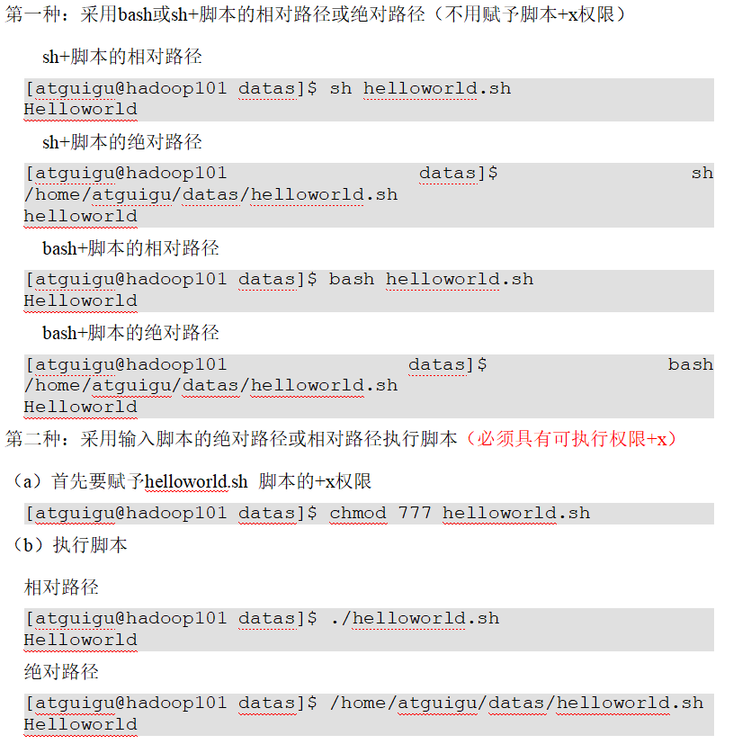echo $B[atguigu@hadoop101 datas]$ ./helloworld.sh