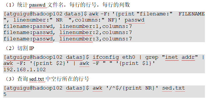 [atguigu@hadoop102 datas]$ awk '/^$/{print NR}' sed.txt