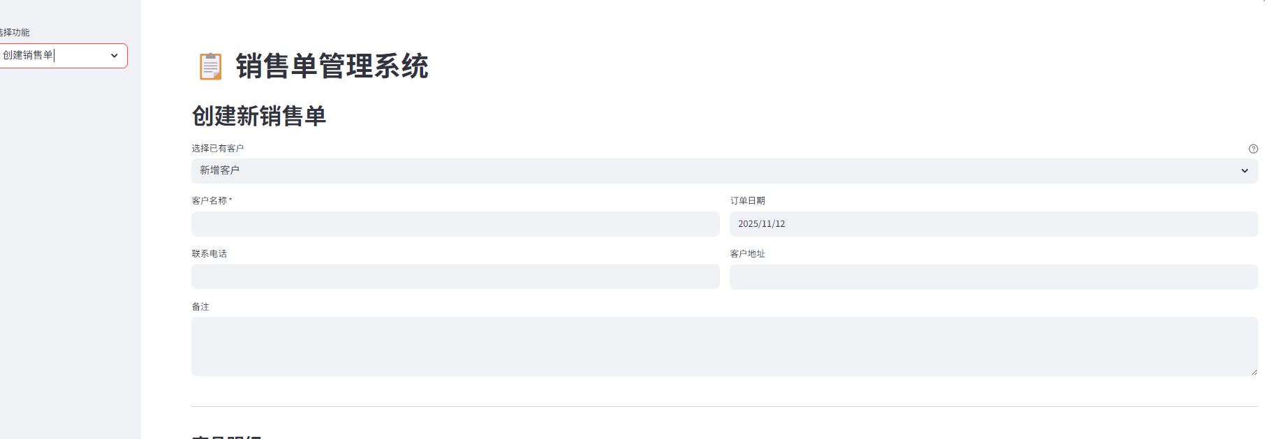 st.title("📋 销售单管理系统")# 侧边栏导航