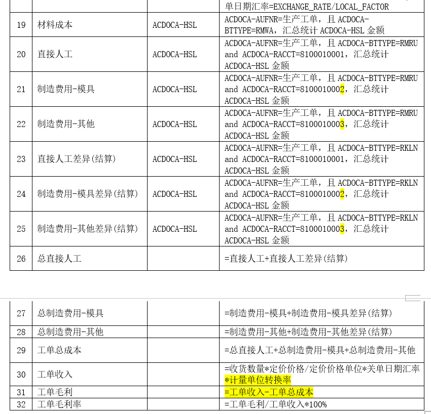 zzjrg TYPE acdoca-hsl, "总直接人工