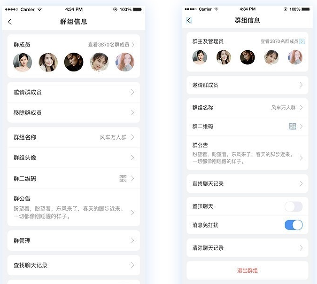 群公告:群公告置顶。发布群公告@全体成员通知所有人。