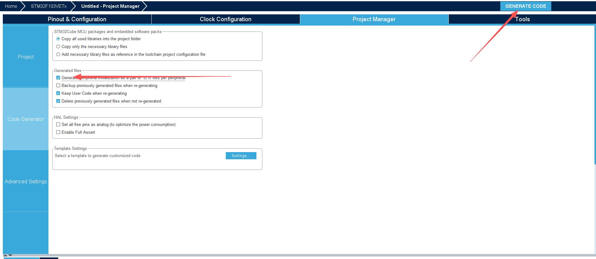 {GPIO_InitTypeDef GPIO_InitStruct = {0};/* GPIO Ports Clock Enable */__HAL_RCC_GPIOC_CLK_ENABLE();__HAL_RCC_GPIOD_CLK_ENABLE();__HAL_RCC_GPIOA_CLK_ENABLE();__HAL_RCC_GPIOB_CLK_ENABLE();/*Configure GPIO pin Output Level */HAL_GPIO_WritePin(LED2_GPIO_Port, LED2_Pin, GPIO_PIN_SET);/*Configure GPIO pin Output Level */HAL_GPIO_WritePin(GPIOB, LED0_Pin|LED1_Pin, GPIO_PIN_SET);/*Configure GPIO pin : PtPin */GPIO_InitStruct.Pin = LED2_Pin;GPIO_InitStruct.Mode = GPIO_MODE_OUTPUT_PP;GPIO_InitStruct.Pull = GPIO_NOPULL;GPIO_InitStruct.Speed = GPIO_SPEED_FREQ_MEDIUM;HAL_GPIO_Init(LED2_GPIO_Port, &GPIO_InitStruct);/*Configure GPIO pins : PBPin PBPin */GPIO_InitStruct.Pin = LED0_Pin|LED1_Pin;GPIO_InitStruct.Mode = GPIO_MODE_OUTPUT_PP;GPIO_InitStruct.Pull = GPIO_NOPULL;GPIO_InitStruct.Speed = GPIO_SPEED_FREQ_MEDIUM;HAL_GPIO_Init(GPIOB, &GPIO_InitStruct);}void LED0(uint8_t x)