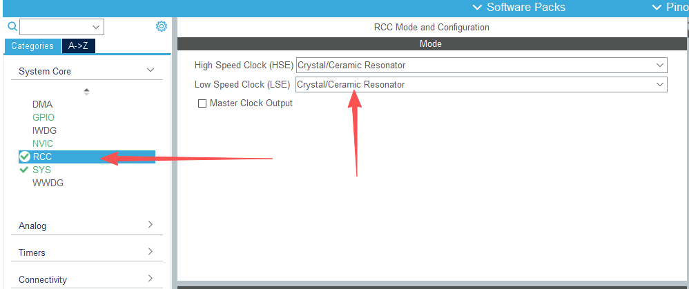 一般选择外部时钟源,选择晶体/陶瓷协震器模式