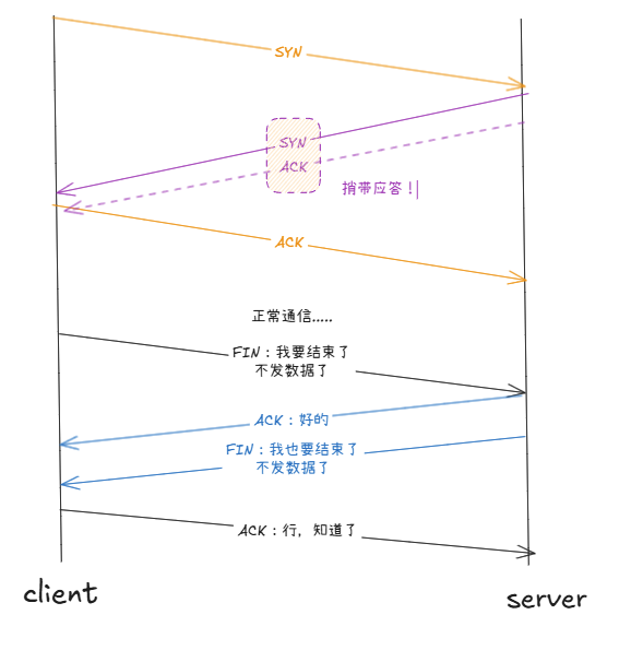 2.三次握手,本质上也是四次握手!只不过第二次做了捎带应答。包括挥手也是同样地道理.面对客户端的连接请求,服务器都要无脑接受。这样就以最小成本,验证了双方的通信意愿。