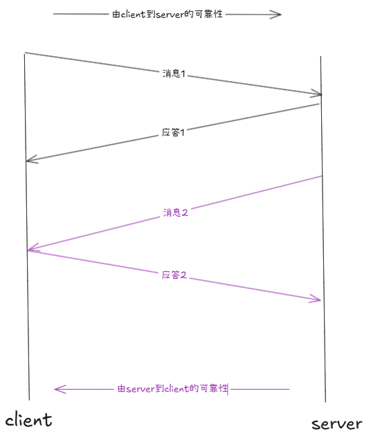 client给server发消息,server一定会给client发应答,而且是操作系统层面的自动完成的工作。这样就保证了从client到server发送消息的可靠性。如果,server也要给client发消息,client也需要做应答。但是,我们不对应答做应答。这一过程保证了server对client发送消息的可靠性。