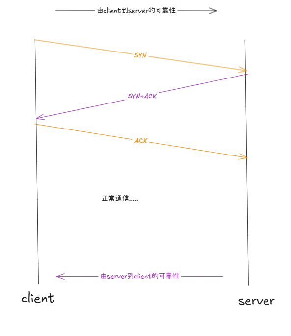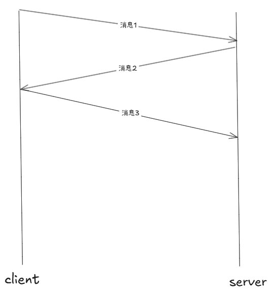 就比如:客户端说了消息1:你吃饭了吗?此时服务端收到了消息1,为了让客户端知道自己收到了消息1,所以回消息2:我吃了!客户端此时收到消息2,就确定了服务端一定收到了消息1.所以回消息3给服务端:好的!服务端收到消息3,确定客户端一定收到了消息2。
