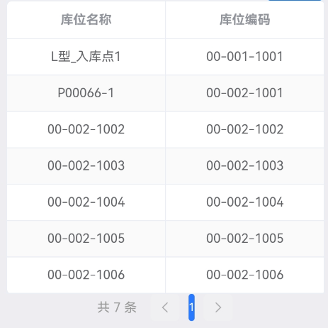 <uni-table ref="table" border stripe emptyText="暂无更多数据"><uni-tr><uni-th width="150" align="center">库位名称</uni-th><uni-th width="150" align="center">库位编码</uni-th></uni-tr><uni-tr v-for="(item, index) in list" :key="index" @row-click="handleRowClick(item, $event)"><uni-td align="center">{{ item.locationName }}</uni-td><uni-td align="center">{{ item.locationCode }}</uni-td></uni-tr>