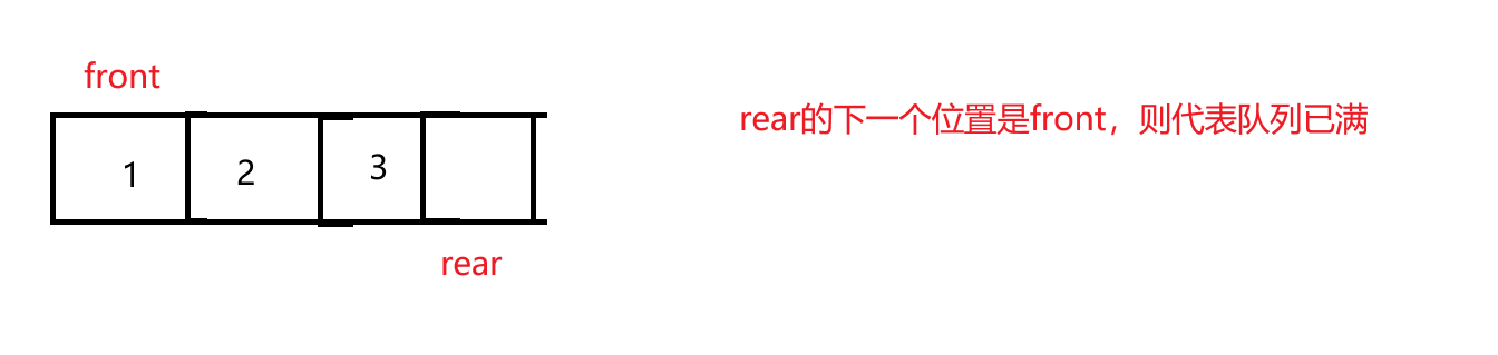 比如,rear是0,则 0 - 1 + 3 + 1 == 3,下标3就是队尾。