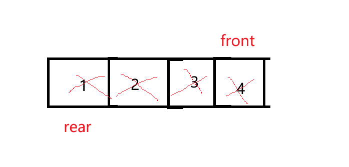 比如rear的下标是3, (3+1) % 4 == 0,front的下标就是0。