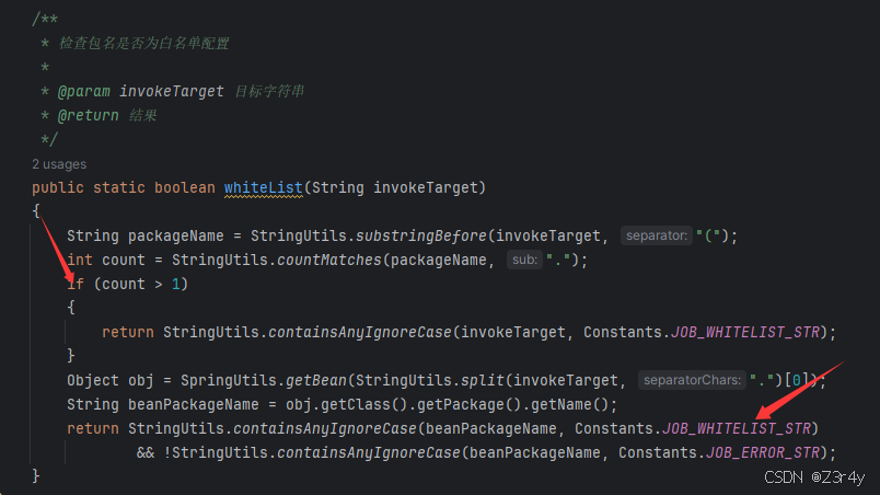 此逻辑在白名单处也有,代码仅仅对全限定类名(class)进行了检测,但没有对spring容器中的对象进行白名单检测。