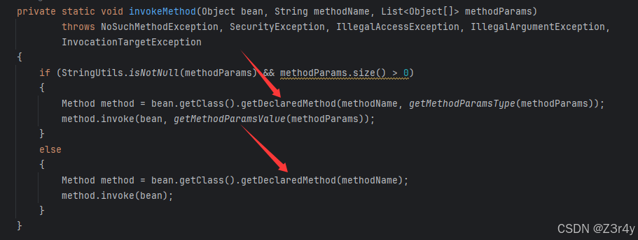 在getDeclaredMethod获取方法后,并没有执行setAccessible(true),所以只能拿public方法
