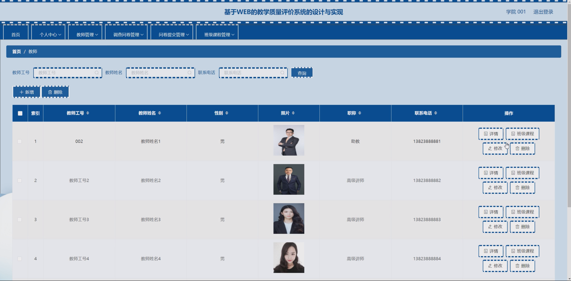对于学生而言,系统提供了便捷的在线问卷提交渠道,保障了学生参与教学评价的权利,使学生的意见和建议能够及时传递给教学管理部门和教师,增强学生的学习主动性和参与感。