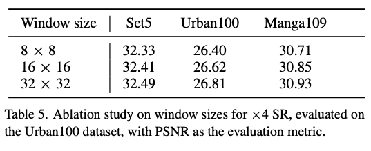 【表5】表明窗口尺寸从 增大到 可进一步提升性能。