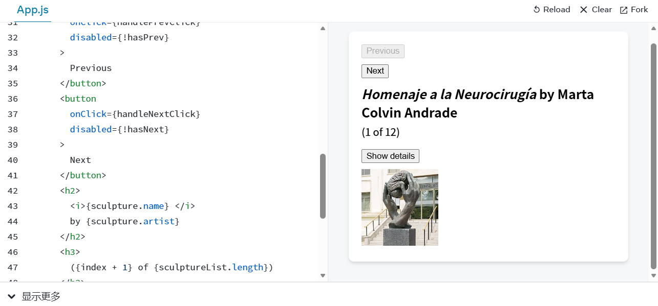 试着在你之前的代码里加上disabled属性控制,看看效果吧~ 比如当index为 0 时,“上一个” 按钮变灰且点不动,是不是更合理了?