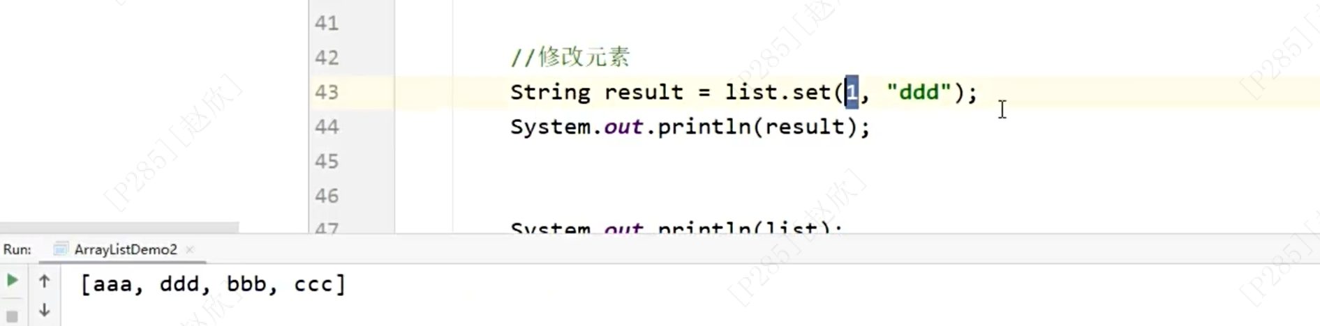 修改元素,第一个参数是索引值,第二个参数是要修改的值,运行之后成功修改