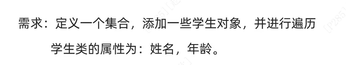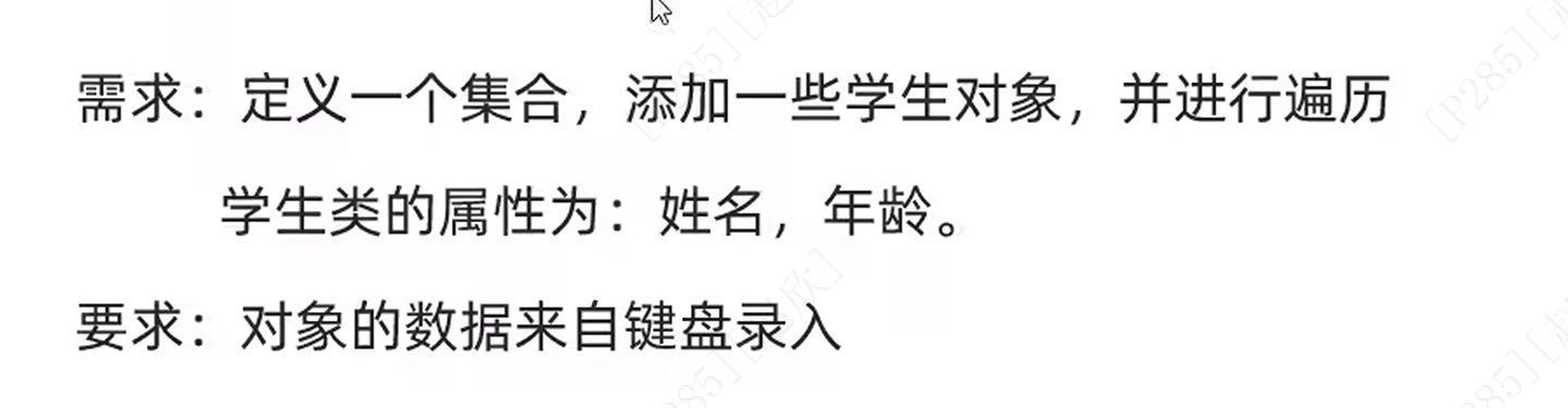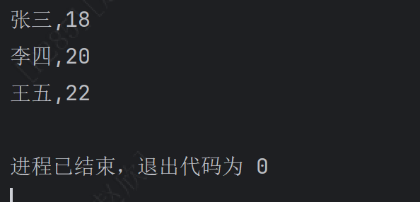 for (int i = 0; i < list.size(); i++) {Stud stu=list.get(i);System.out.println(stu.getName()+","+stu.getAge());//类是自己编写需要使用get方法才能输出姓名和年龄