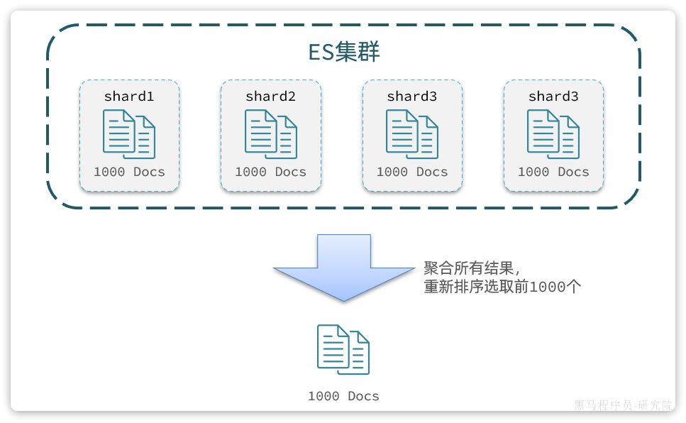 试想一下,假如我们现在要查询的是第1000页数据呢,是不是要找第9990~10000的数据,那岂不是需要把每个分片中的前10000名数据都查询出来,汇总在一起,在内存中排序?如果查询的分页深度更深呢,需要一次检索的数据岂不是更多?