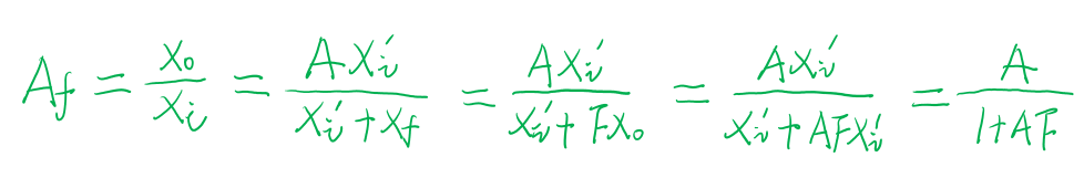 (3)由于Af=1/F,将原本的表达式Af=Xo/Xi;F=Xf/Xo带入进去可以发现:Xi≈Xf。即在深度负反馈的情况下,净输入量为0,我们称为虚断/虚短。