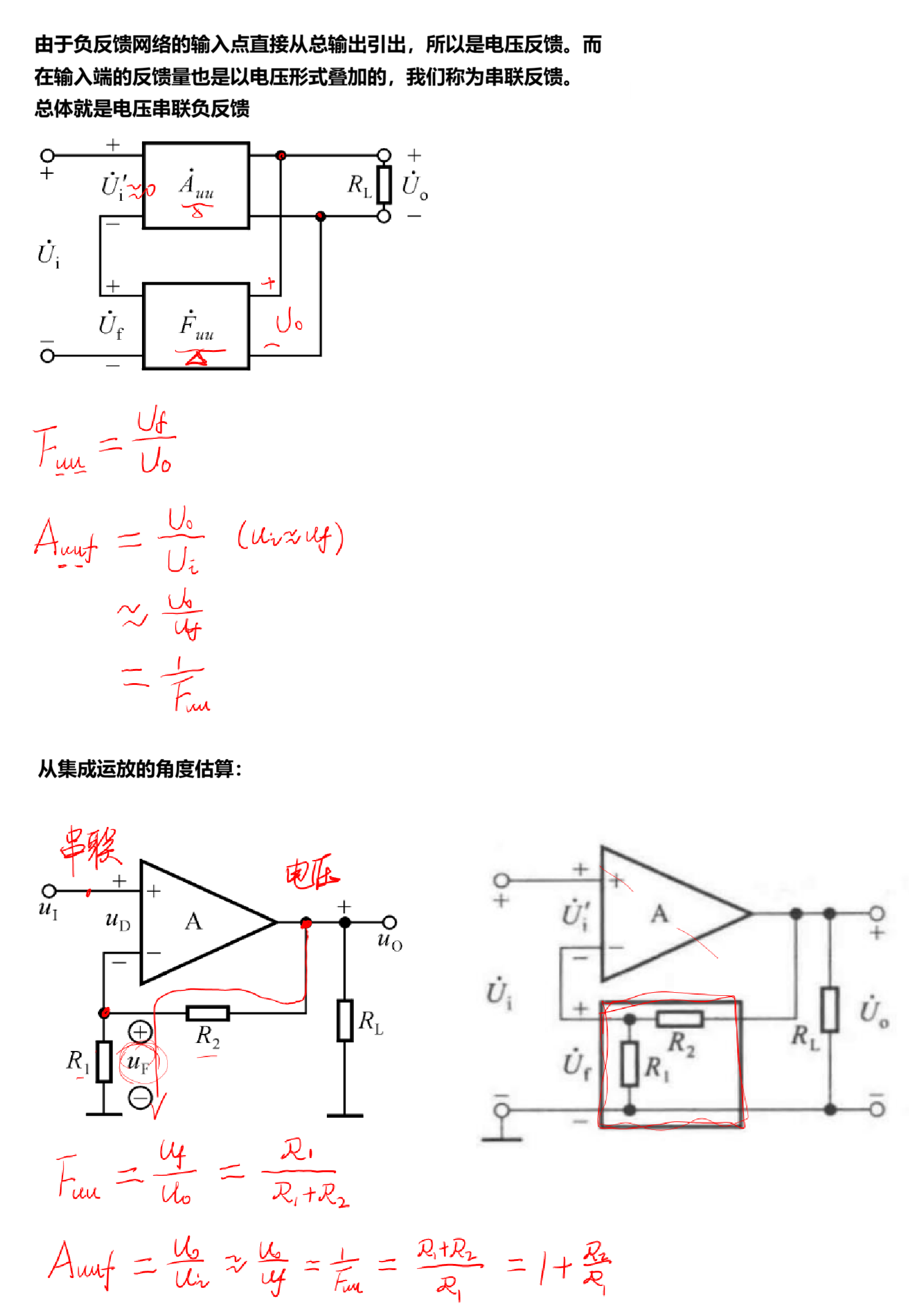 对于电压串联负反馈形式,由于输入端和输出端都是电压形式,所以Auf直接就是1/Fuu