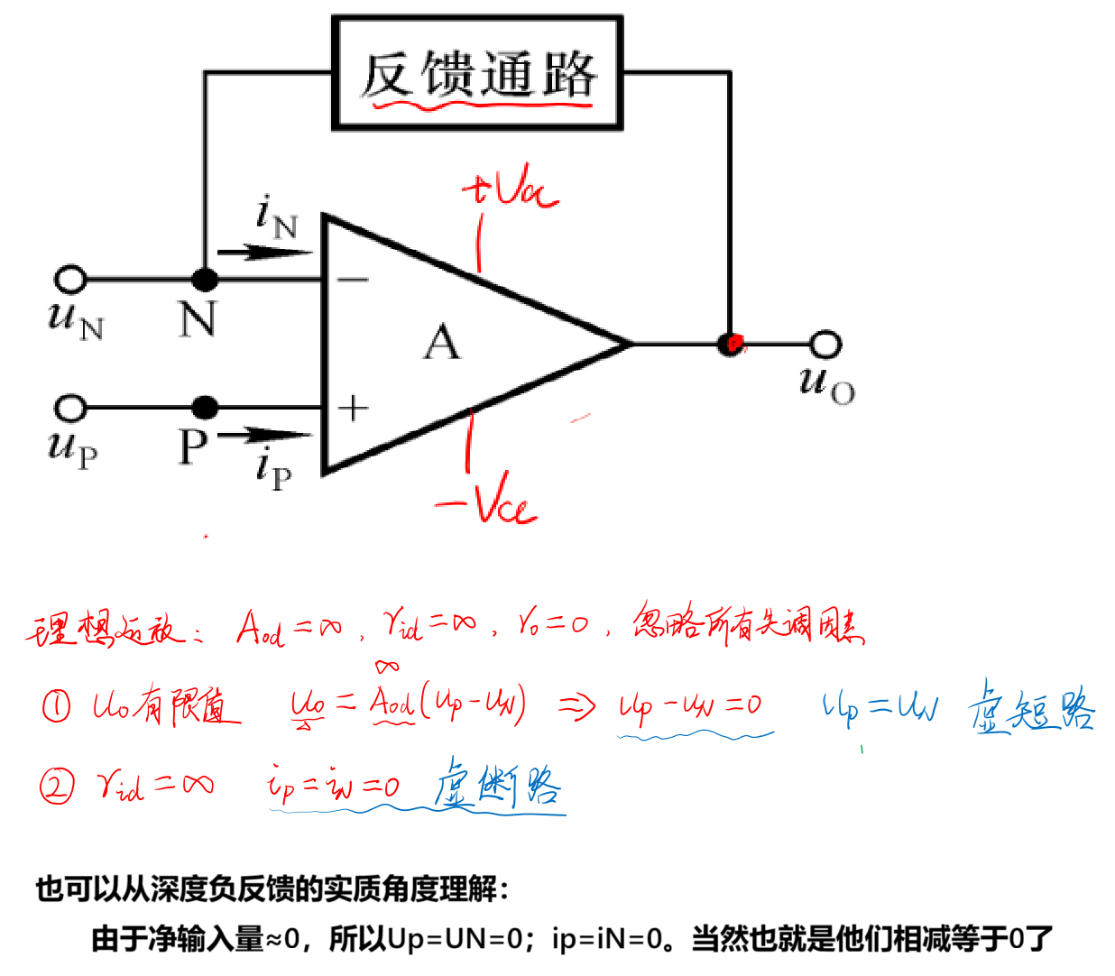 总的来说,深度负反馈的实质就是虚短路和虚断路。在输入量为电压时候,用虚短路来称呼;在输入量为电流的时候,用虚断路来称呼。不过这里说的都是交流角度下,而直流该怎么偏置就怎偏置。