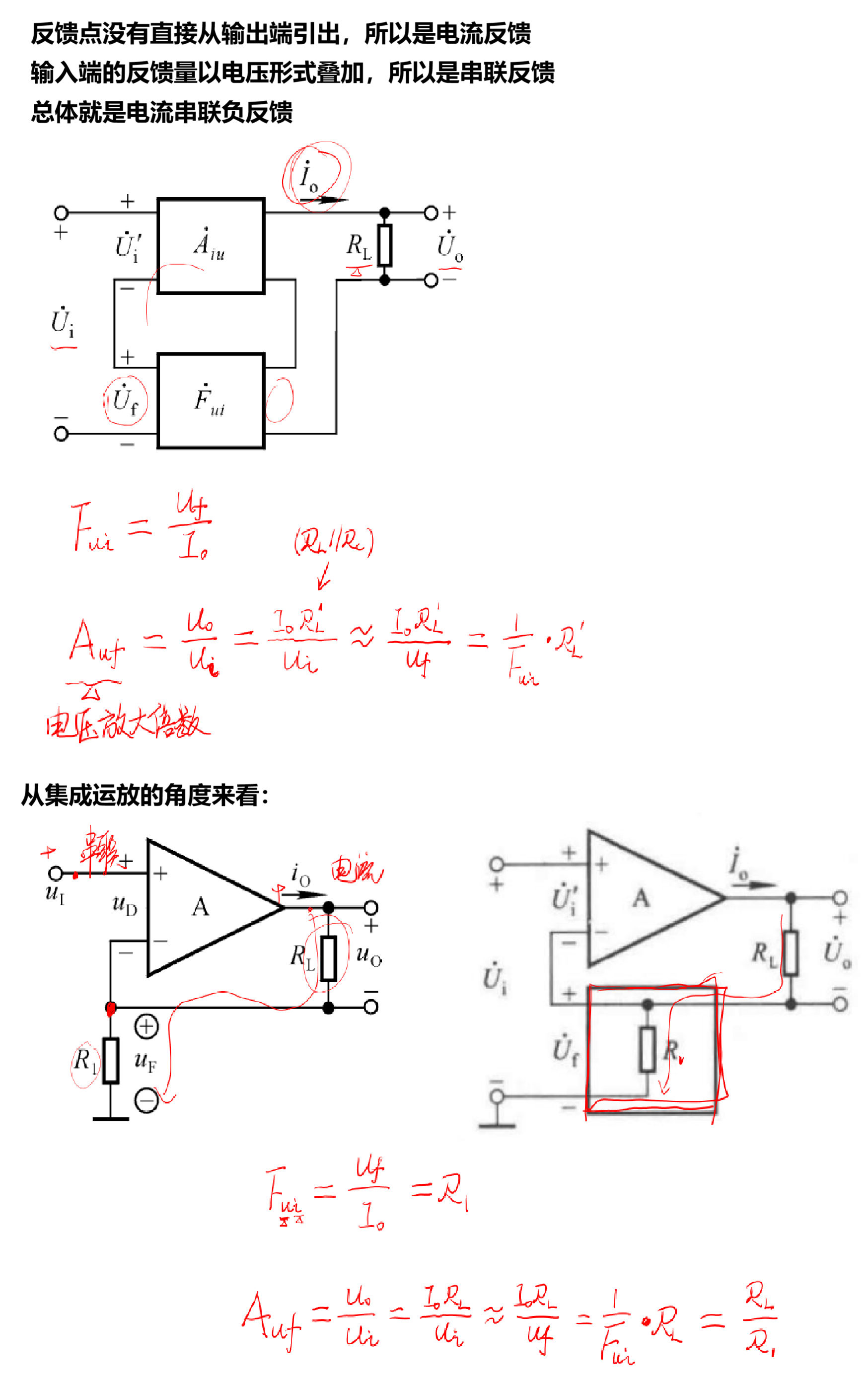 而电流串联负反馈形式,输出端是电流形式,输入端是电压形式叠加,所以Auf=RL*1/Fui