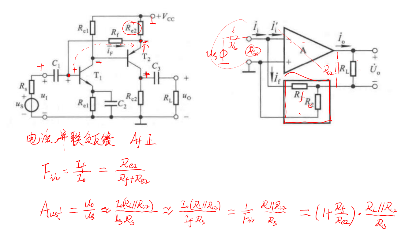 电流并联反馈形式,输入端、输出端都是电流,所以Auf=RL*1/(Fii*Rs)