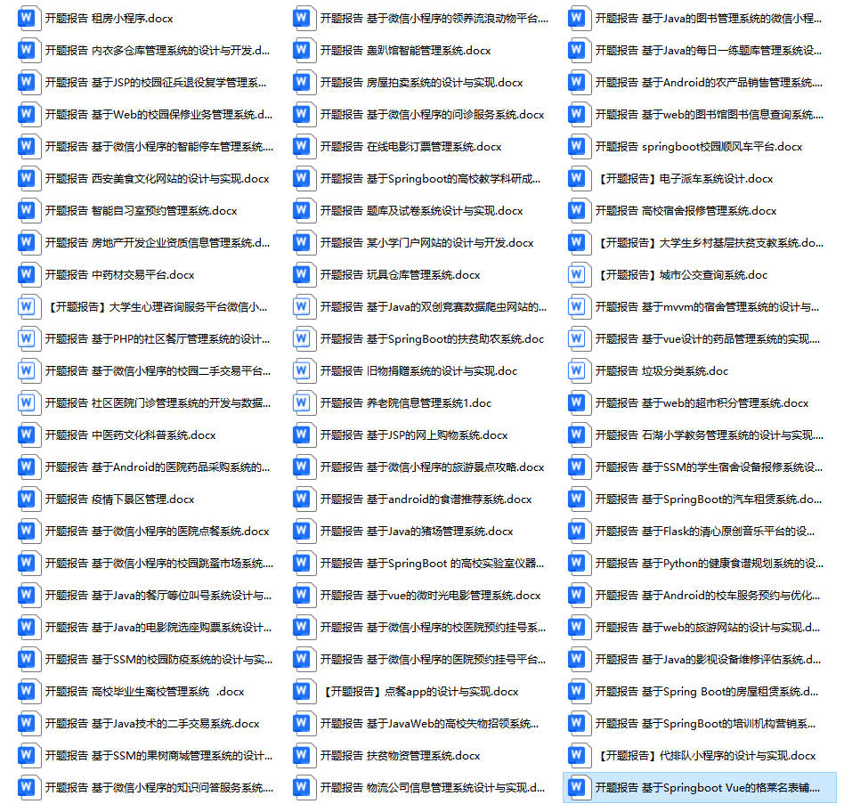 以上是某同学的毕业设计答辩的过程,如果你现在还没有参加答辩,还是开题阶段,已经选好了题目不知道怎么写开题报告,可以下面找找有没有自己符合自己题目的开题报告内容,列表中的开题报告都是往届真实的开题报告,可发送使用或参考。文末或底部来联xi可免费获取