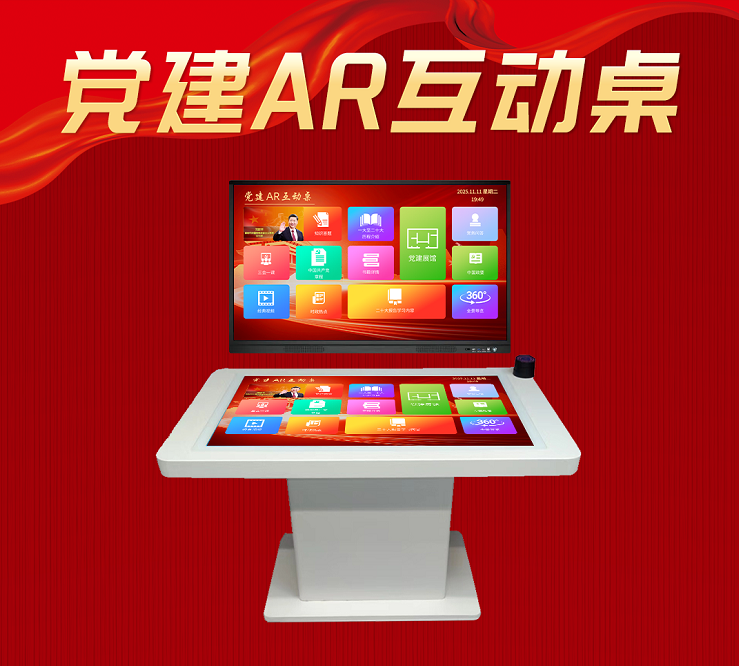 AR党建互动台支持本地化特色党建内容定制,可根据不同地区、单位的需求,添加地方党史、特色党建活动、重要人物事迹等内容,让党建文化学习更具针对性。同时,它可接入LED大屏、投影设备等外设,适用于党政机关、企事业单位、党建展馆等多种场景,满足不同规模的党建展示需求。