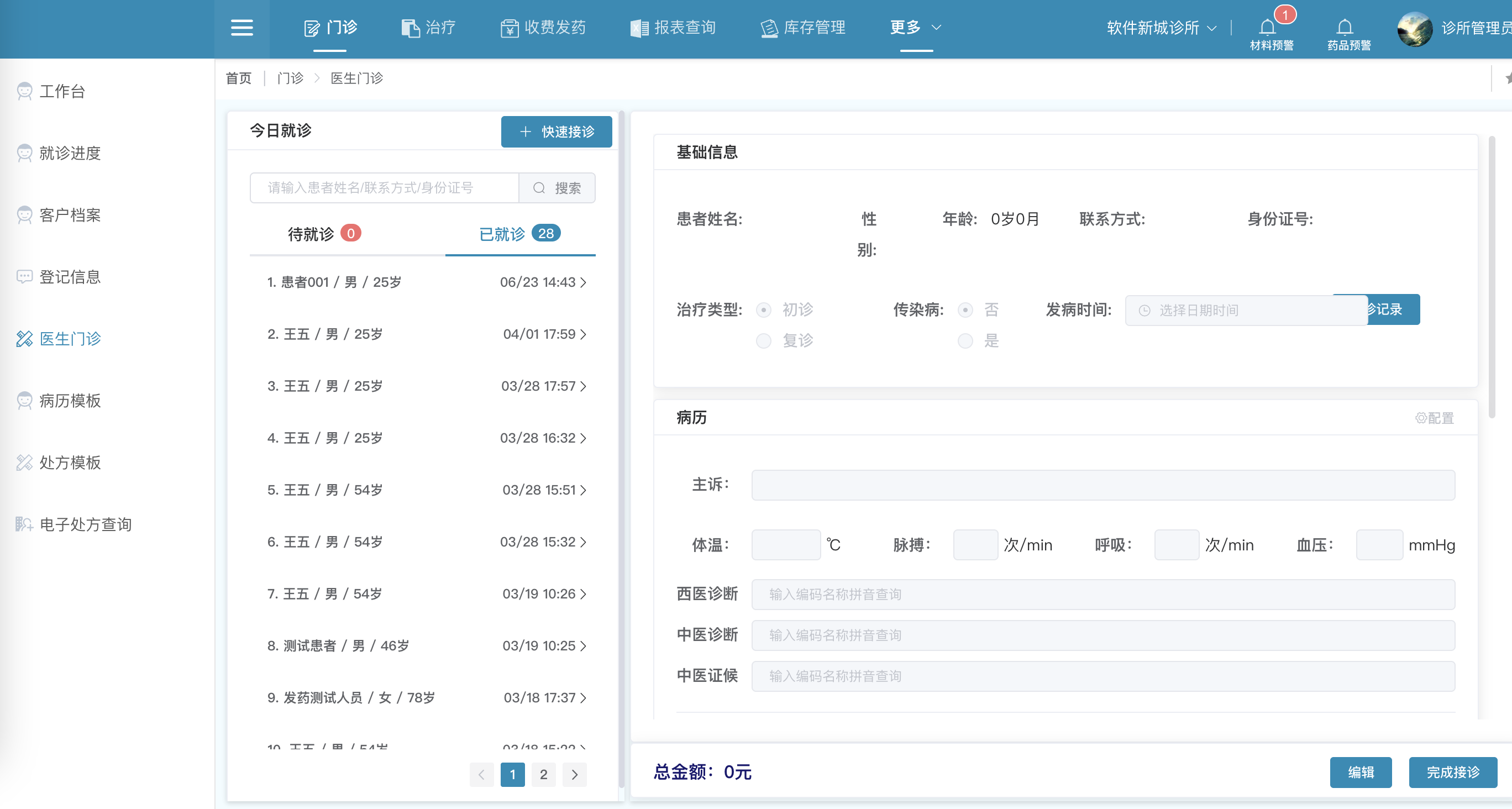 电子病历书写(支持模板)