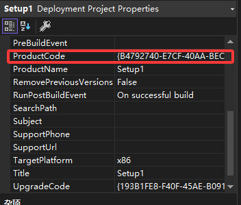 UpgraduCode:指定表示应用程序的多个版本的共享标识符。