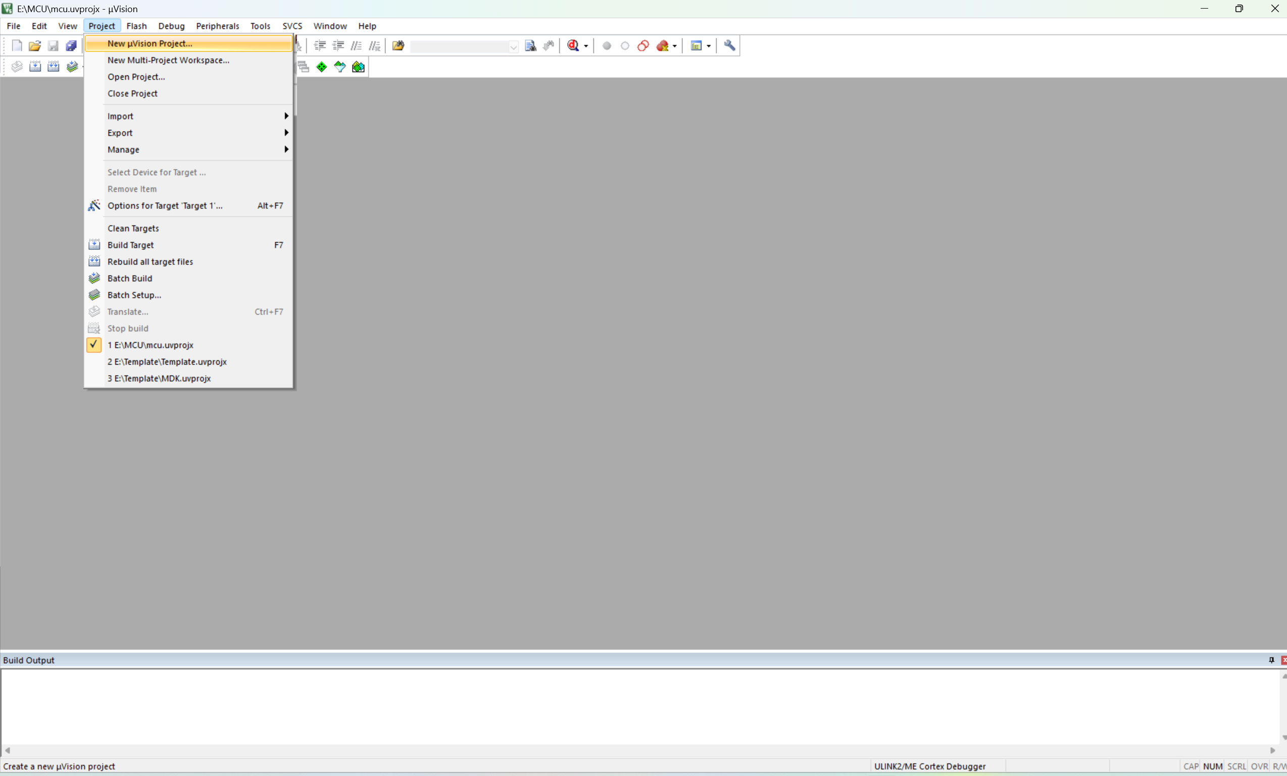 安装结束就可以创建新工程。project——>New uvision Project